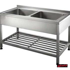 سینک ظرفشویی استیل رویه جوشی دو لگن پایه دار
